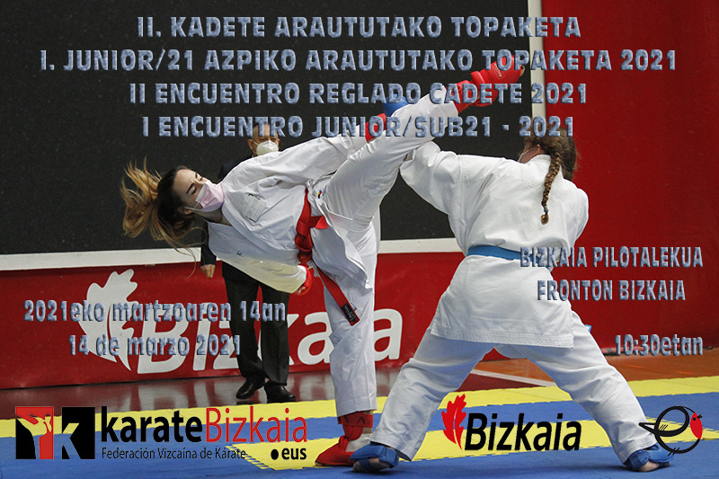 La Federación Bizkaina de Karate, convoca para el próximo 14 de marzo, el I Trofeo Junior y Sub21 de la Temporada en las modalidades de Kumite y Kata Femenino y Masculino. Estas actividades, corresponden a entrenamientos llevados a la practica de la competición, con el fin de ir desentumeciendo poco a poco las actividades que debido al Covid, han sido suspendidas. Estas actividades se realizar con riguroso plan de actuación ante el covid.