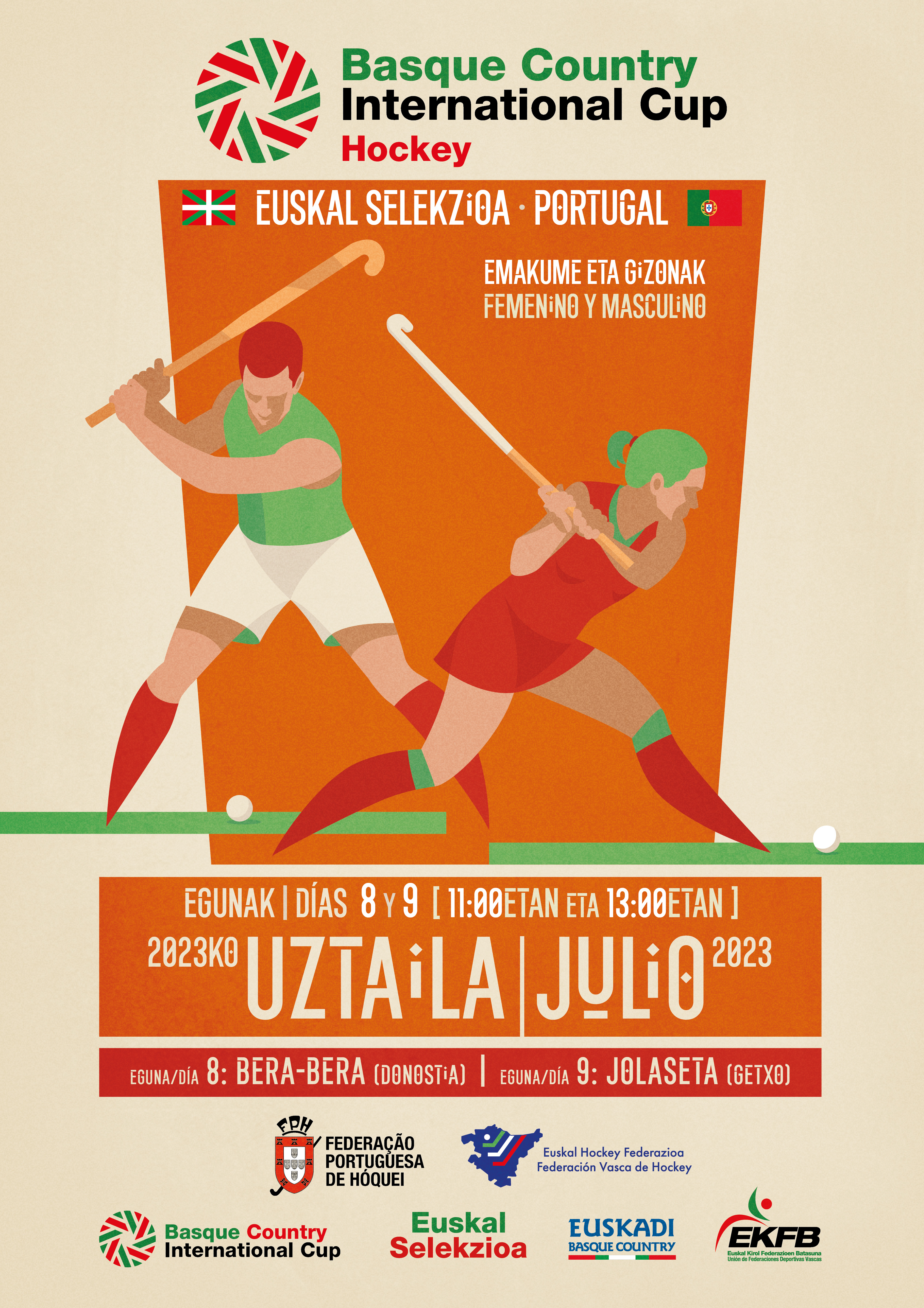Euskadiko Selekzioei nazioarteko jarduerak eskaintzeko asmoz, asteburu honetarako txapelketa hau antolatu dugu: " HOCKEY-BASQUE COUNTRY INTERNACIONAL CUP". Txapelketa honetan Euskadi eta Portugaleko selekzioak lehiatuko dira gizonezkoen eta emakumezkoen maila absolutuan. Honako egutegi honen arabera egingo da Uztailaren 8an, larunbata, Bera-Berako Donostiako instalazioetan: 11: 00etan: EUSKADI - `PORTUGAL (emakumezkoak) 13: 00etan: EUSKADI - `PORTUGAL (gizonezkoak) Uztailaren 9an, igandea, Real Club Jolasetak Getxon dituen instalazioetan: 11: 00etan: EUSKADI - `PORTUGAL '(emakumezkoak) 13: 00etan: EUSKADI - `PORTUGAL (gizonezkoak) Gure kirolarentzat oso ekitaldi garrantzitsua da; izan ere, urteak dira Euskadiko Selekzio Absolutuek jokatzen ez zutela, eta Euskadiko Selekzioa bezalako nazioarteko partidak jokatzen ziren. Beraz, guretzat babes handia izango litzateke zuen parte-hartzea txapelketa honetara. Bertaratzerik ez badago, Donostiako biharko partidak streamming bidez emango dira eta hurrengo estekan jarraitu ditzakezue. https://www.youtube.com/live/5Efd7I4qurg?feature=share Zuen babesa izango dugulakoan, __________________________________________________________________________________________________________________________________________________________________ En nuestro interés de dar actividad internacional a las Selecciones de Euskadi hemos organizado para este fin de semana el campeonato : "BASQUE COUNTRY INTERNACIONAL CUP- HOCKEY". Esta competición enfrentará a las selecciones de Euskadi y Portugal en su categoría absoluta masculina y femenina. Se celebrará según el siguiente calendario (Adjuntamos el cartel del la competición.) Sábado 8 de julio en las instalaciones de Bera-Bera en Donostia: 11:00 horas EUSKADI - `PORTUGAL (femenino) 13:00 horas EUSKADI - `PORTUGAL (masculino) Domingo 9 de julio en las instalaciones del Real Club Jolaseta en Getxo: 11:00 horas EUSKADI - `PORTUGAL (femenino) 13:00 horas EUSKADI - `PORTUGAL (masculino) Para nuestro deporte es un evento muy importante ya que hace años que no jugaban las seleccione de Euskadi Absolutas, ni se jugaban partidos internacionales como Selección de Euskadi , por lo que sería para nosotros un gran apoyo contar con vuestra asistencia a este campeonato. En caso de no poder asistir , los partidos de mañana en Donostia, se retransmitirán por streamming y los podéis seguir en el siguiente enlace https://www.youtube.com/live/5Efd7I4qurg?feature=share Esperando contar con vuestro apoyo.