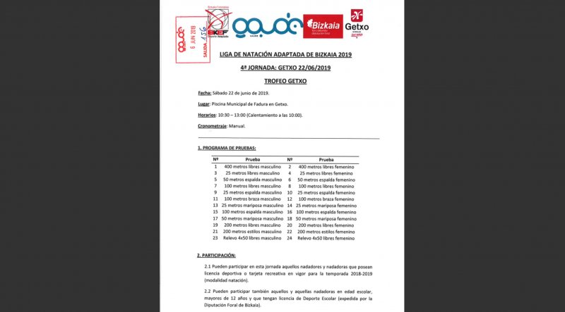 4ª Jornada de la liga de Natación Adaptada FDAB-BKEF 2019