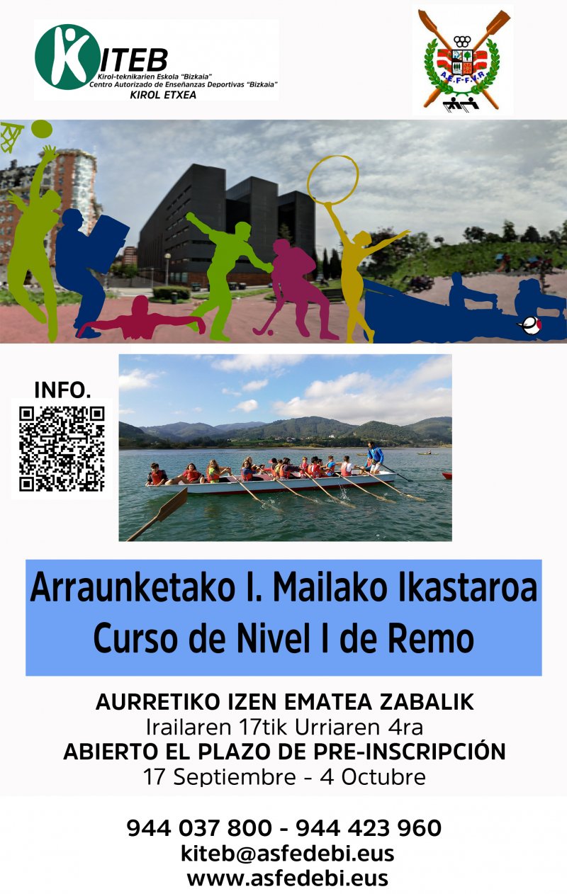La Federación Vasca de Remo convoca los cursos oficiales de Entrenador/a de Remo de Nivel I dentro del marco de las actividades de formación deportiva a las que se refiere la disposición transitoria primera del Real Decreto 1363/2007, de 24 de octubre cuyos aspectos curriculares, requisitos y efectos son regulados por la Orden ECD 158/2014, de 5 de febrero.