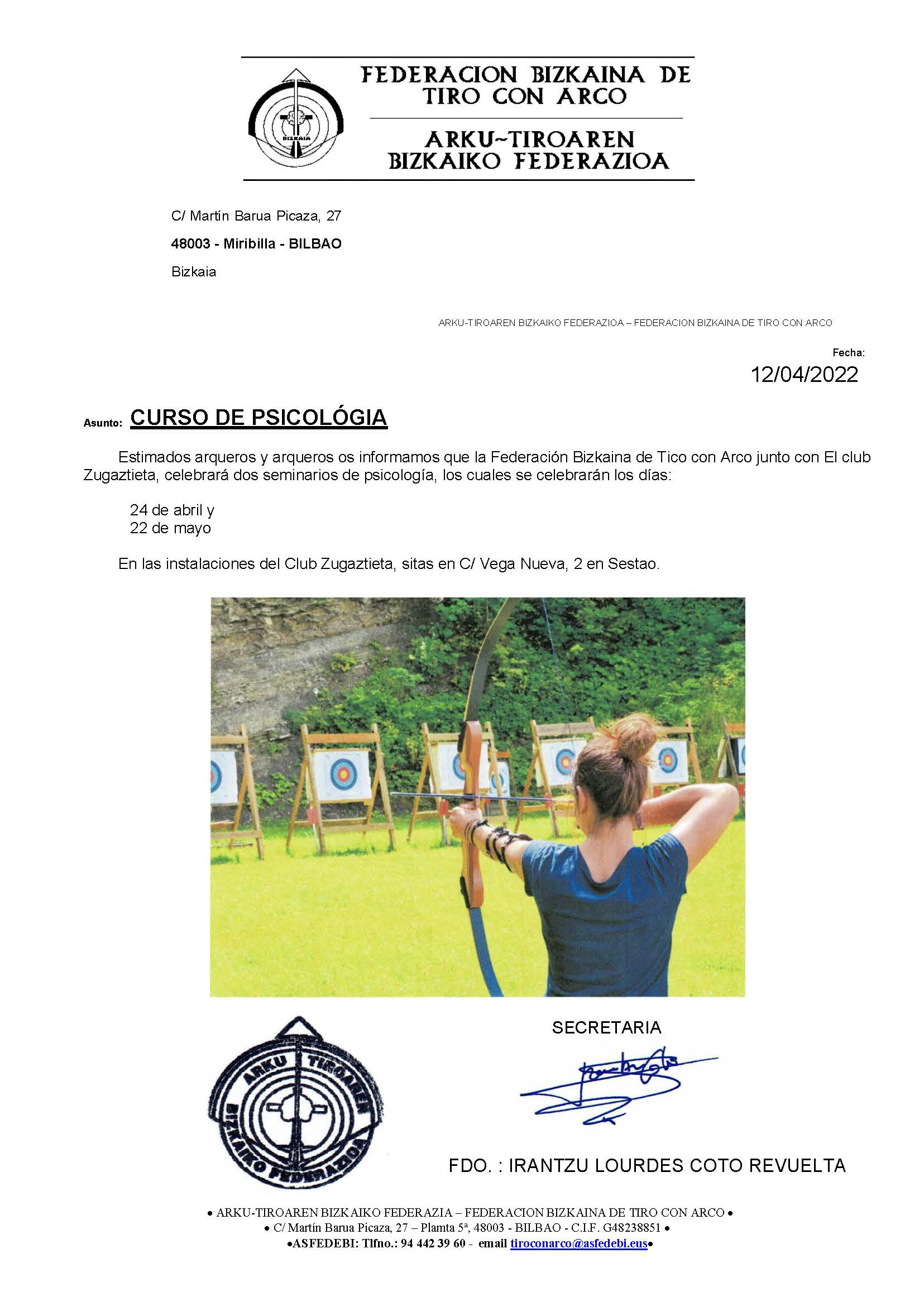 2ª convocatoria seminario de psicología adaptado al tiro con arco (22/05/2022)