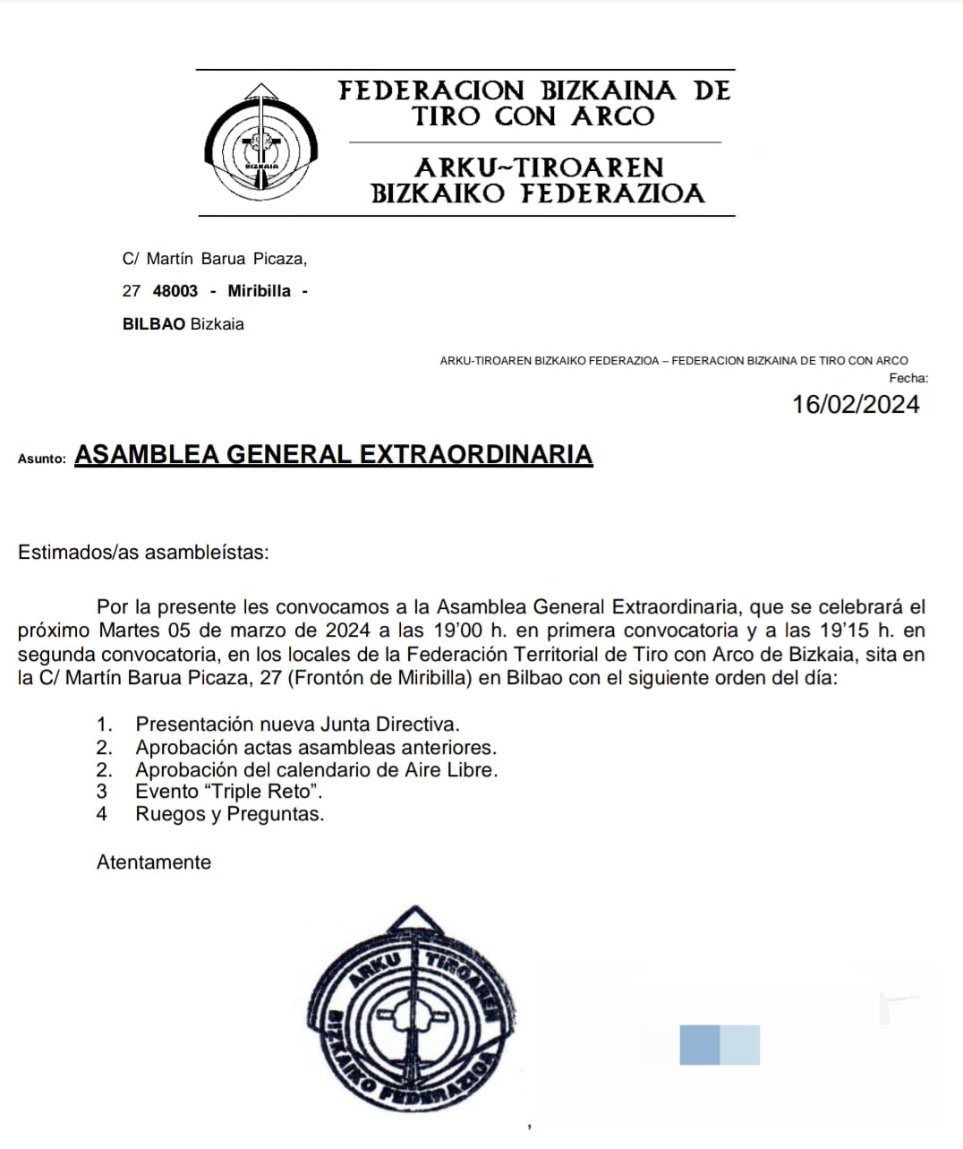 CONVOCATORIA ASAMBLEA GENERAL  EXTRAORDINARIA MARTES 05 DE MARZO DE 2024