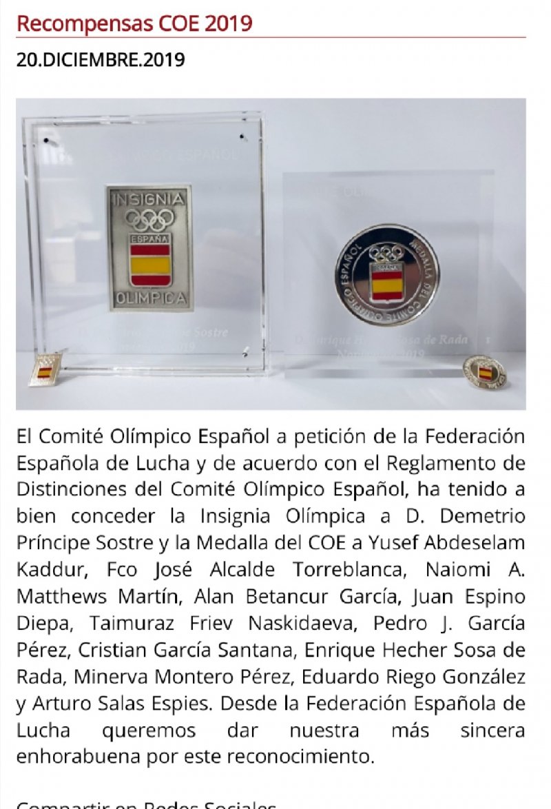 Insignia olímpica Demetrio príncipe y Medallas Coe Naiomi