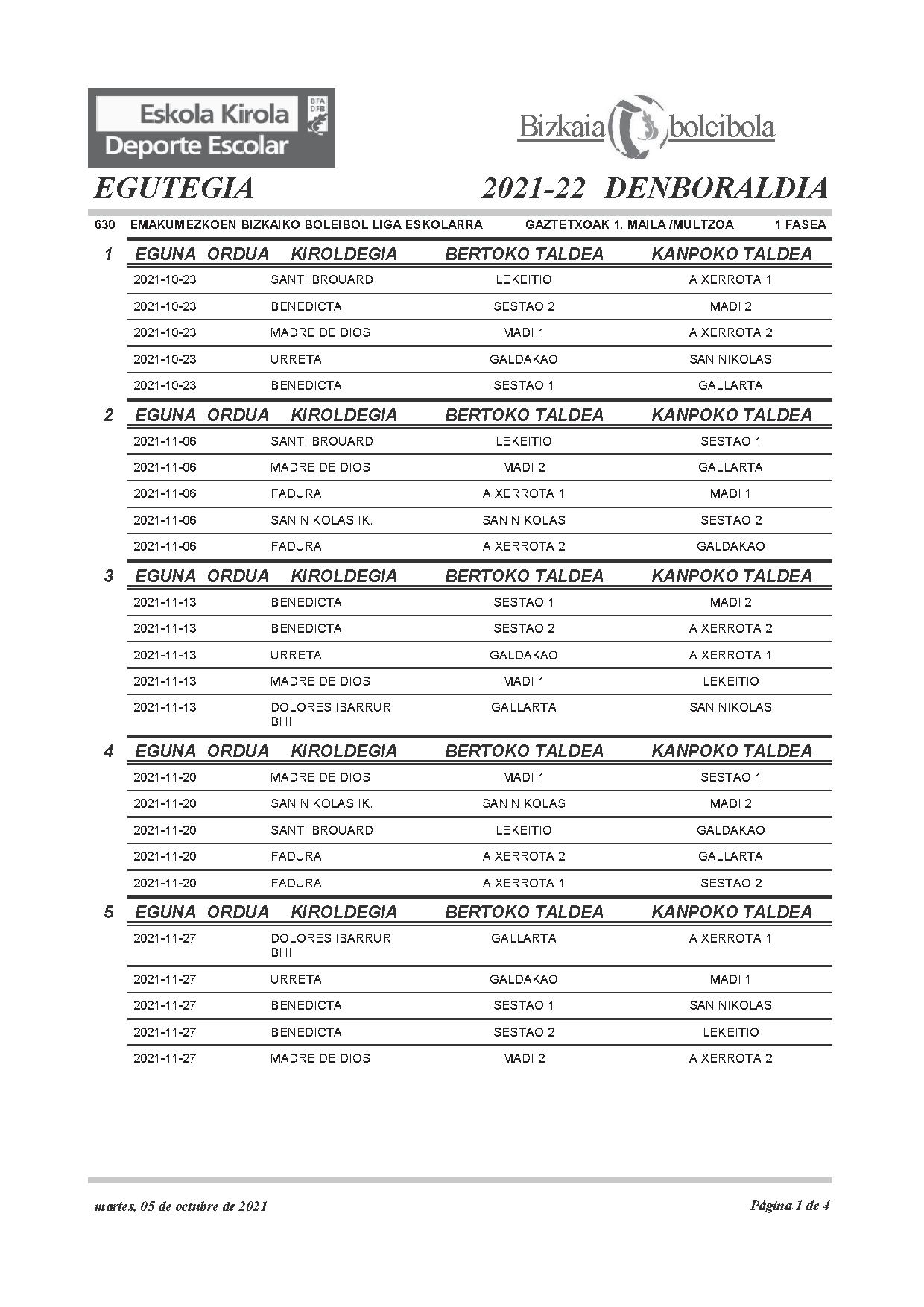 2021-22 denboraldiko boleiboleko Eskola kiroleko infantil mailako egutegia Calendario infantil de voleibol de deporte escolar de la temporada 2021-22