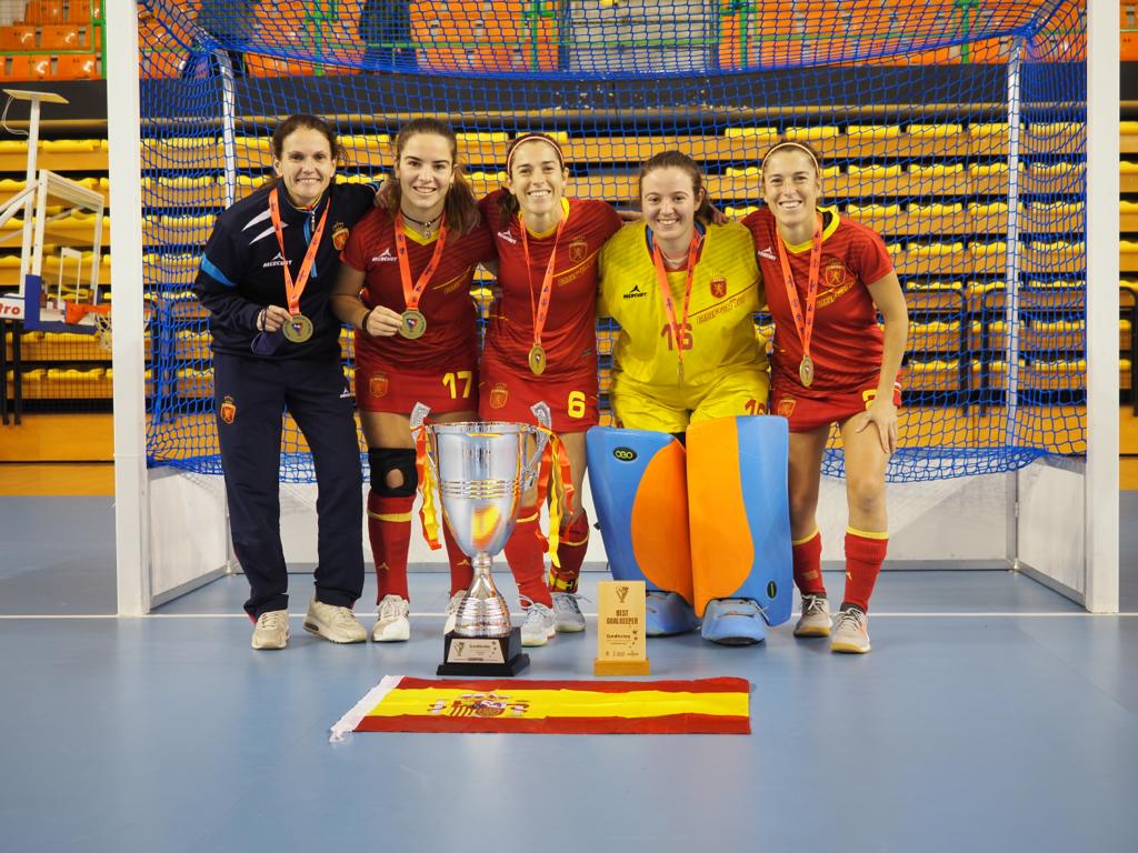 La selección española absoluta femenina de hockey sala, se ha proclamado este domingo en Ourense, como nuevas campeonas del EuroHockey Indoor Championship, Women II. Lo ha hecho al derrotar a Irlanda (4-0), en el último encuentro celebrado en el Pazo Dos Deportes Paco Paz. Bélgica, que acompaña en el ascenso de categoría a España, dejaba la opción de obtener el título tras empatar frente a Suiza, en el partido que abría la matinal. Una posibilidad que las de Mar Feito no desaprovecharon. Entre las jugadoras, dos Bizkainas, Rocio y Lucia Ybarra, consiguieron la copa. Zorionak por el triunfo!!!!