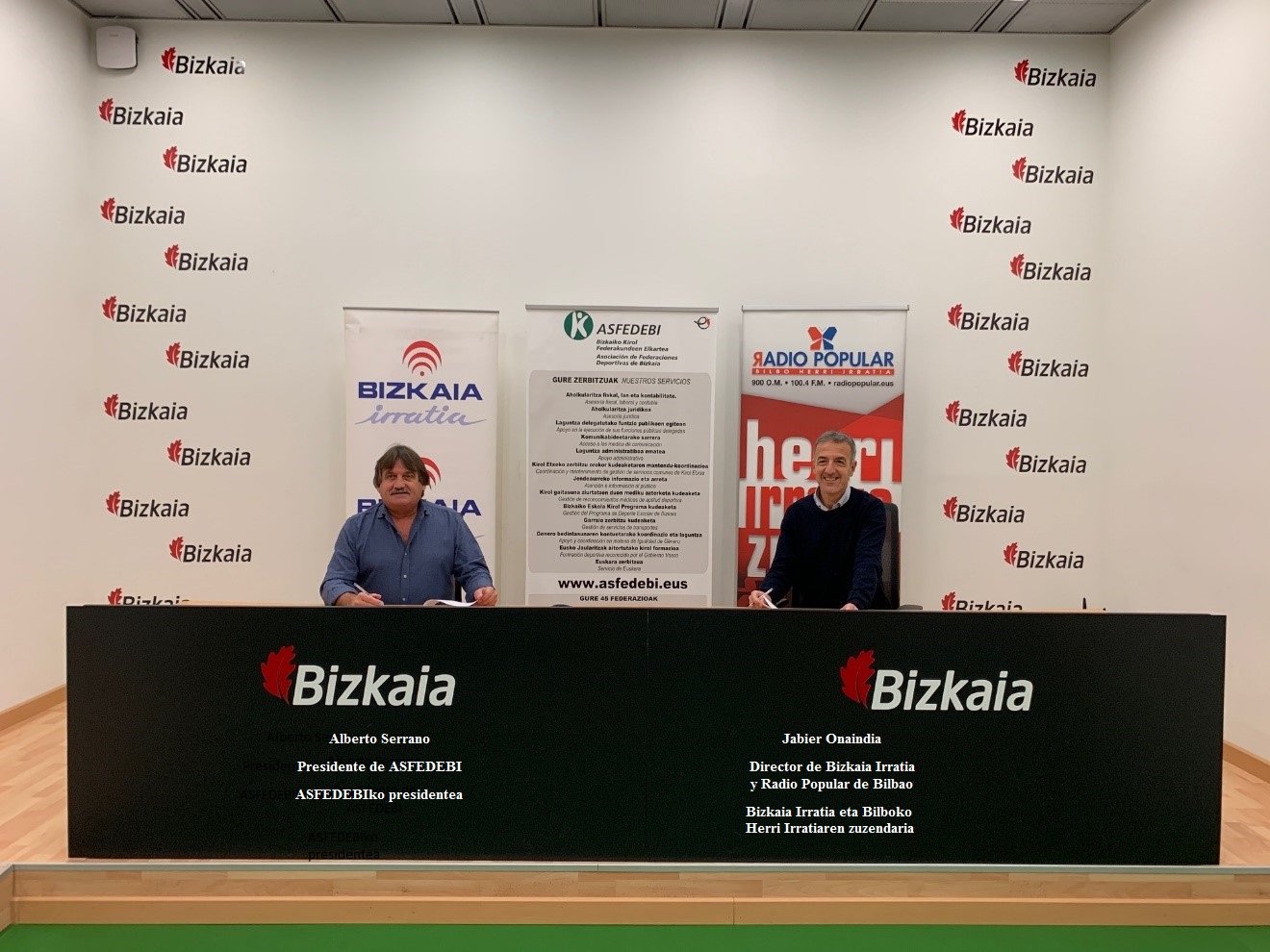 Atzo, lankidetza-hitzarmen bat sinatu zuten Bizkaia Irratiak eta Bilboko Herri Irratiak (Bilbo Herri Irratia) ASFEDEBIrekin, Bizkaiko Federazioen kanpo-komunikazioa hobetzeko, elkarte gisa egindako lana sustatzeko eta zabaltzeko, eta elkartearen nahiz federazioen albiste eta ekitaldiei buruzko informazioa emateko.
