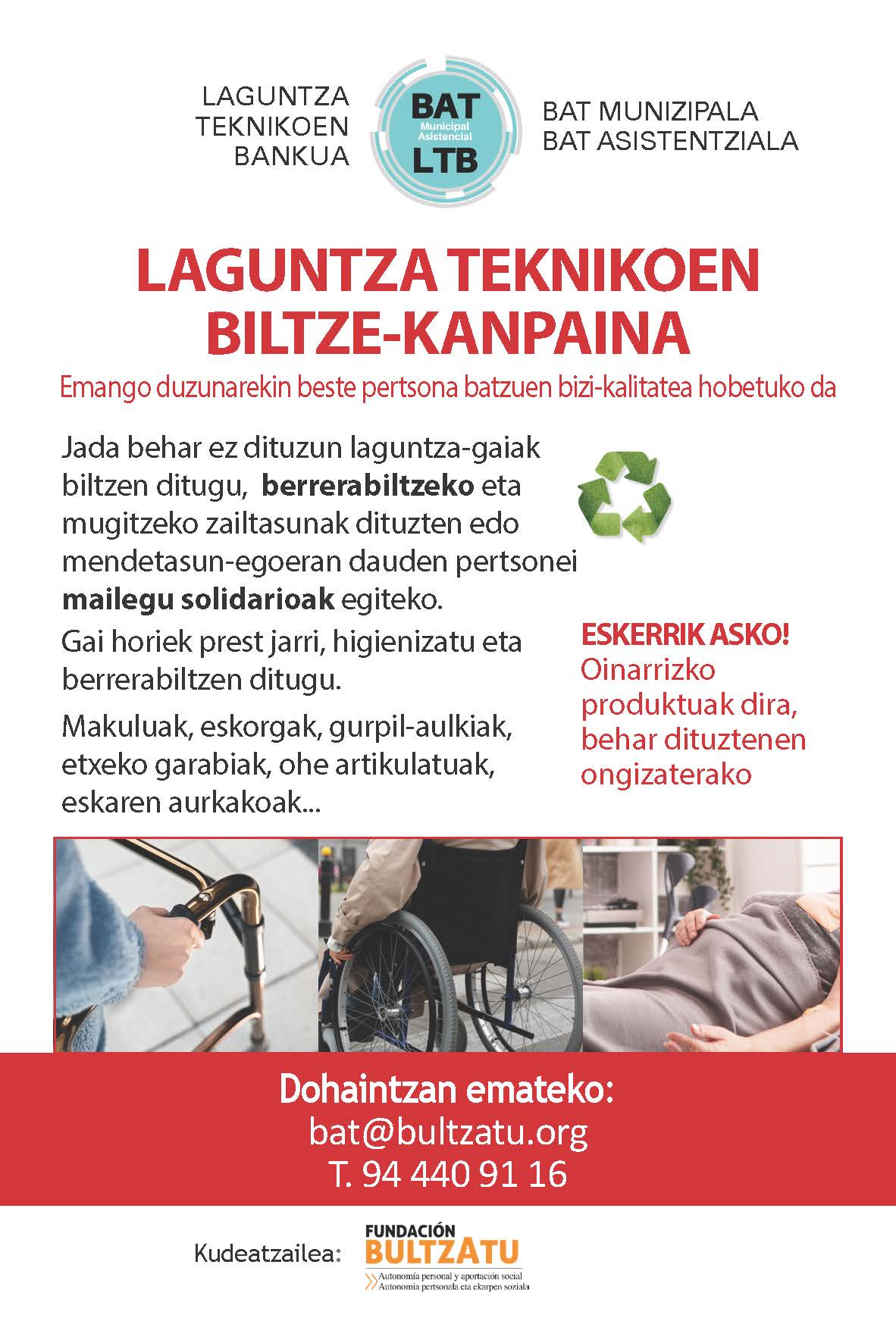 Bizkaiko 80tik gora erakunde baino gehiago elkartu egin dira gaur, Bilbon, Laguntza Teknikoak Biltzeko 6. Kanpaina abiarazi dela aurkezteko ekitaldian. Ekimen solidario hori Bultzatu Fundazioak koordinatzen duen Laguntza Teknikoen Bankuak (BAT, gaztelaniazko sigletan) antolatu ohi du, laguntza-gaien estaldura-sarea indartzeko eta produktu horiek behar dituzten pertsona guztiek erraz eskura ditzaten.